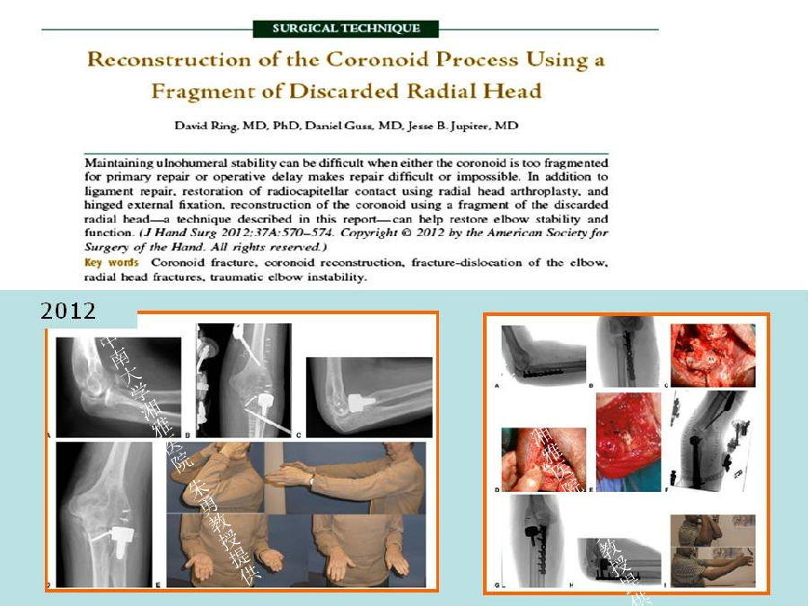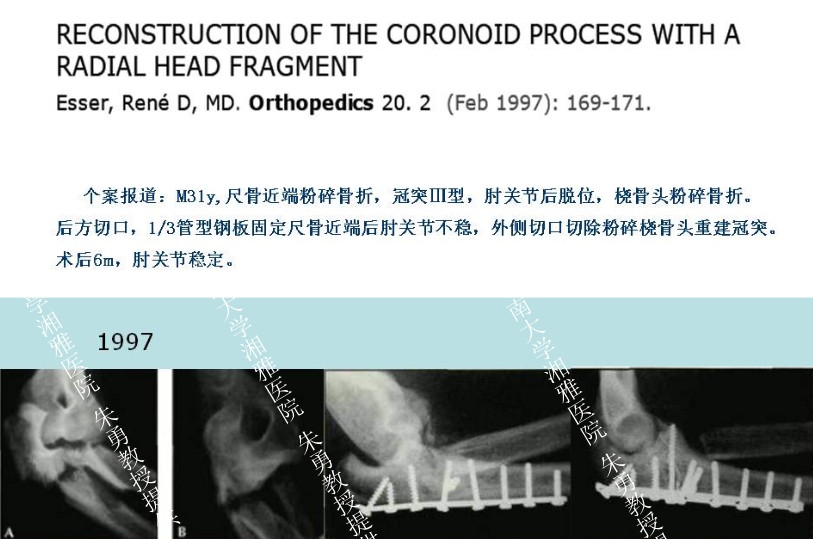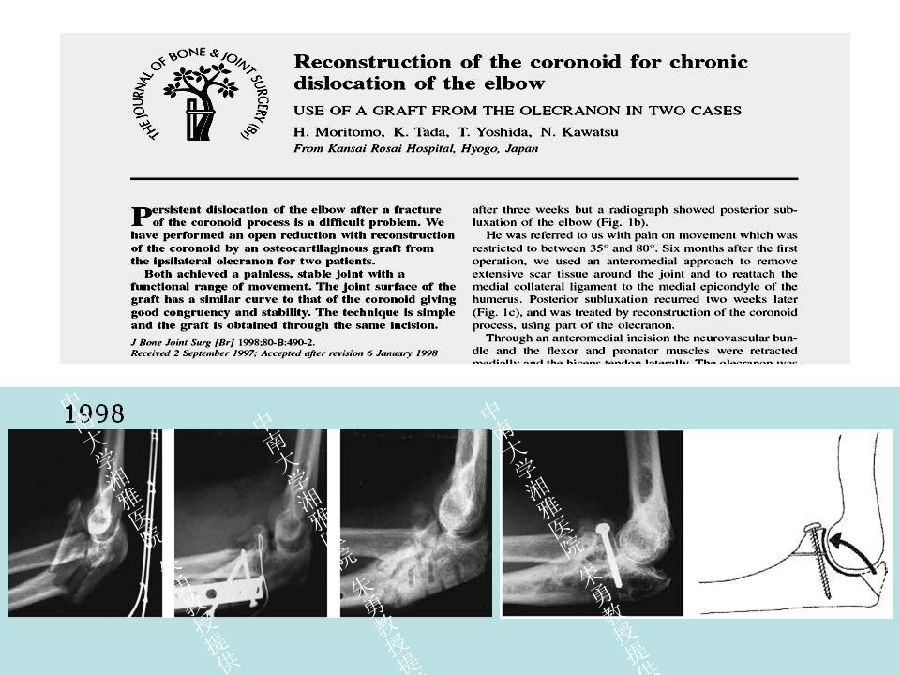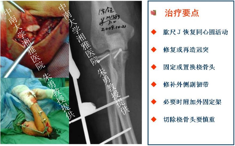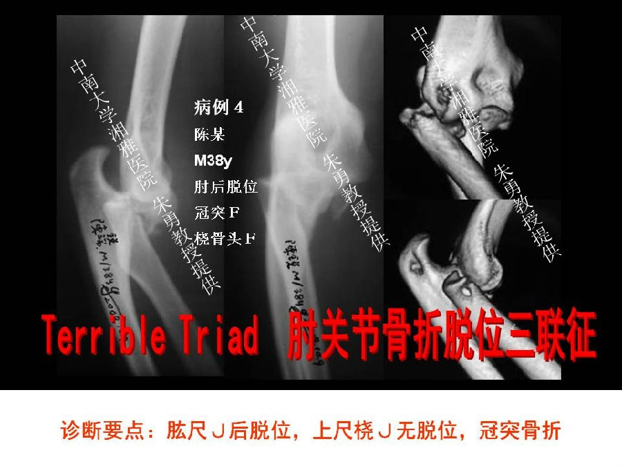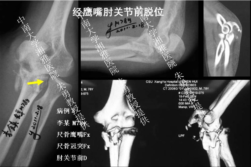 肘关节是人体内在稳定性最强的关节之一,骨性结构和软组织结构复杂。单纯肘关节脱位时没有骨折,但常伴有关节囊、韧带和其他软组织的损伤。复位后常比较稳定,很少出现关节不稳定和退变。相反,复杂的肘关节脱位是关节囊、韧带损伤的同时合并一处或多处骨折,治疗比较困难。为此,骨科在线创伤主编、北京大学人民医院付中国教授特邀请中南大学湘雅医院朱勇教授分享他治疗复杂肘关节脱位的心得,在此也希望广大骨科同仁踊跃投稿(典型病例和学术文章),来稿请发至:orth@orthonline.com.cn
