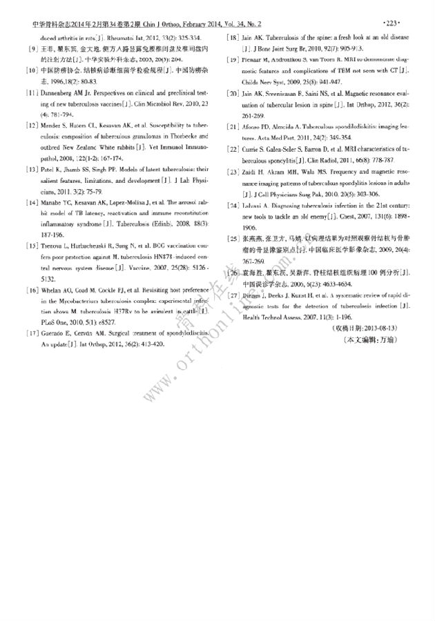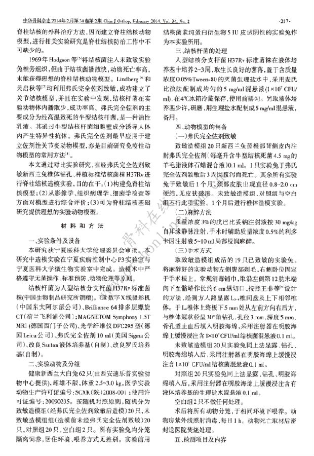 目的:探讨构建新西兰兔脊柱结核模型的实验方法,并评价此种方法的可行性.