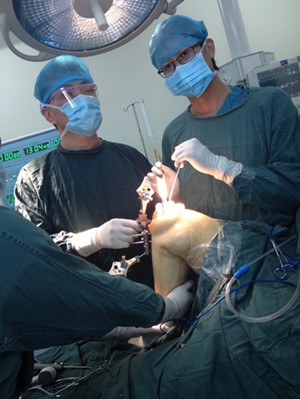 西安市红会医院应用全膝关节置换术治疗严重膝关节骨性关节炎已有十几年历史,并已成为常规手术且取得了满意疗效。人工全膝关节置换术的疗效与患者的选择、假体设计、手术技术及术后康复有关,但更取决于术中良好的软组织平衡和股骨与胫骨假体间的力学对线。现有手术条件下我们采用的机械定位技术主要依靠医生的经验和完善的机械定位系统。机械定位系统依靠肉眼对肢体和假体的观察来取得手术中的定位和对线数据,在先天上有其局限性,会影响其精确度。近10年来,计算机导航技术在骨科手术中的应用得到了飞速的发展,突破了传统膝关节置换手术的局限性,在下肢力线的正确重建、假体的准确置入、屈伸间隙和韧带平衡等方面获得了传统手术难以达到的效果,尤其在关节外畸形严重,髓内定位系统难以确定其力线的特殊病人中有巨大的优势。西安市红会医院已引进先进的计算机手术导航系统并进行了系统培训,在此基础上关节外科膝关节病区6月25日成功为一位骨性关节炎患者实行了计算机导航下的人工全膝关节置换术。