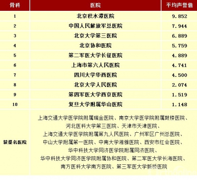 复旦版2013医院实力排名出炉 且看中国骨科谁最强