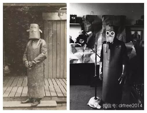 (放射专业嘛,首要考虑的肯定是安全问题。这是上个世纪初的技术人员防护设备,够酷吧!)