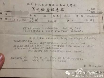(建国初期,杭州市民医院的放射科医生延续了民国时期的传统:用外文书写诊断报告。)