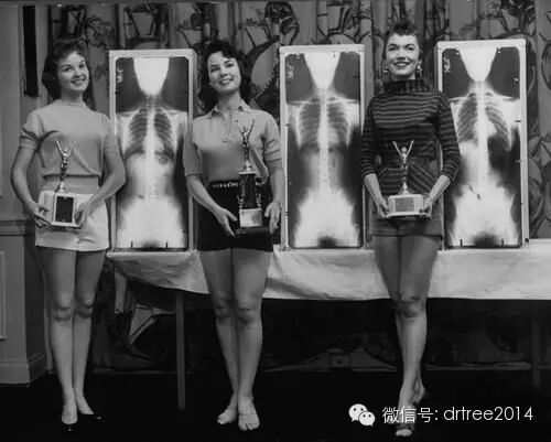 (1956年的选美比赛中,选手们甚至拍摄了X线,以展示她们标准的身材。这是获胜者和她们的X线片)