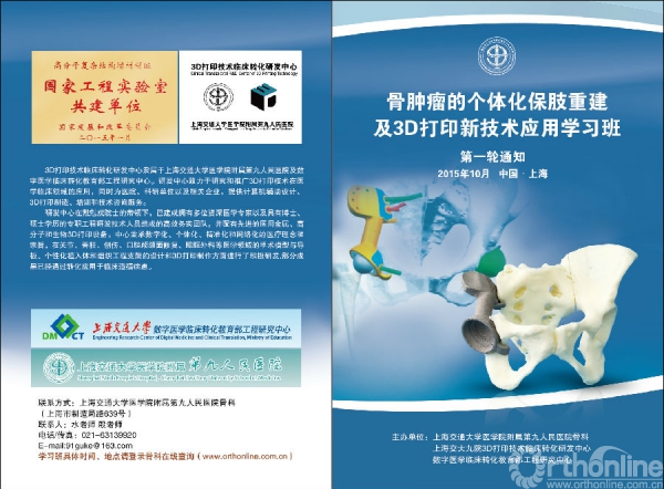 骨肿瘤的个体化保肢重建及3D打印新技术应用学习班将在十月份举办