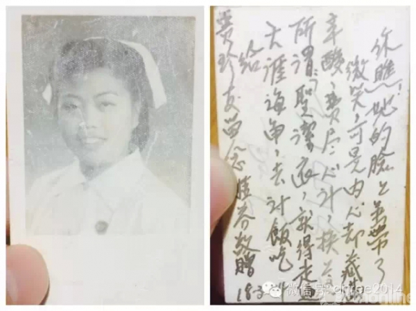 1944年3月,名叫“桂芬”的护士,把自己的这张照片赠给友人。她在照片背面写下这段话:“你瞧,她的脸上虽带了微笑,可是内心却藏满心酸。费尽心计,换上这所谓‘圣洁衣’,就得走遍天涯海角去讨吃。”很明显,这位护士在抱怨。