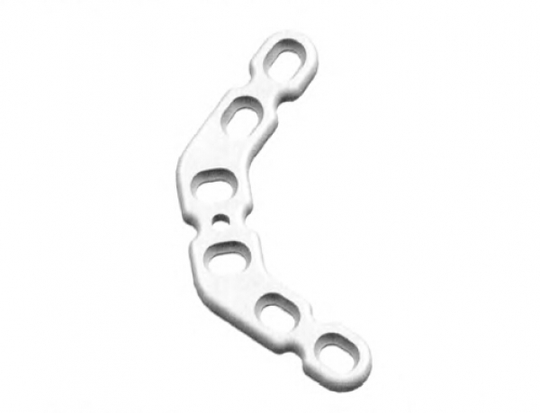 图1骶髂前路蝶形钢板,为一体两支的整体平面设汁,两支呈同定的60。角,中心点径2nlm的觅氏针临时固定孔