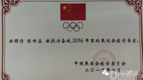 记者:陈世益曾多次担任中国奥运代表团医务官,去年开始为进一步做好国家队医疗保障工作及里约奥运代表团临战准备工作,陈世益教授又受聘担任“备战2016年里约奥运会医疗专家”,为中国奥运健儿争金夺银、提供强有力的健康保障。据您了解有没有运动员为了奥运任务带伤上场比赛的?