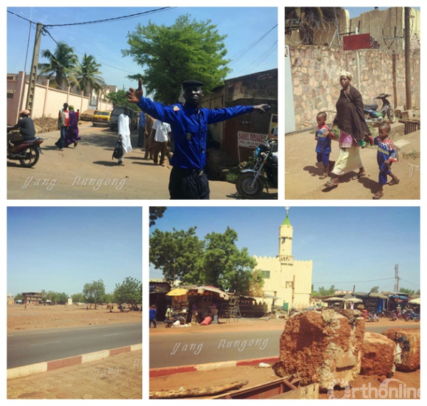 马里当地街道。左上图片右下角的路牌显示为Sahel,即萨赫勒地区。2009年至今,自称为“伊斯兰马格里布基地组织”的武装分子在这一地区活动日益猖獗,而制造此次炸弹恐怖袭击的也正是这个臭名昭著的“基地”组织北非分支