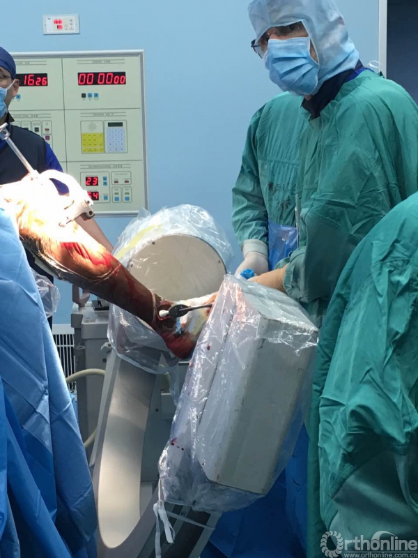 7月22日上午,万事俱备,术前计划及设备准备周全,登巴·巴在全麻下行“左胫骨髓内钉内固定术”。
