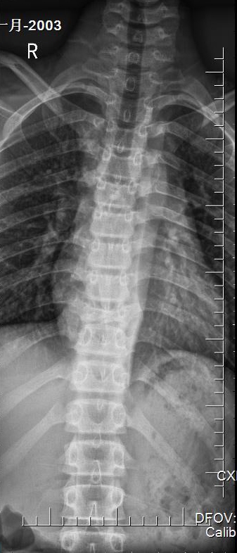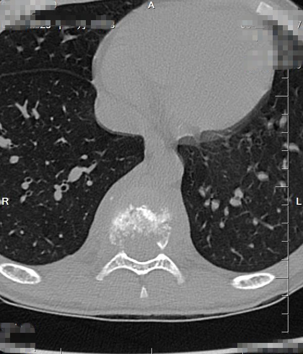 患者资料:男,13岁。主诉:胸背部疼痛伴活动受限1月。