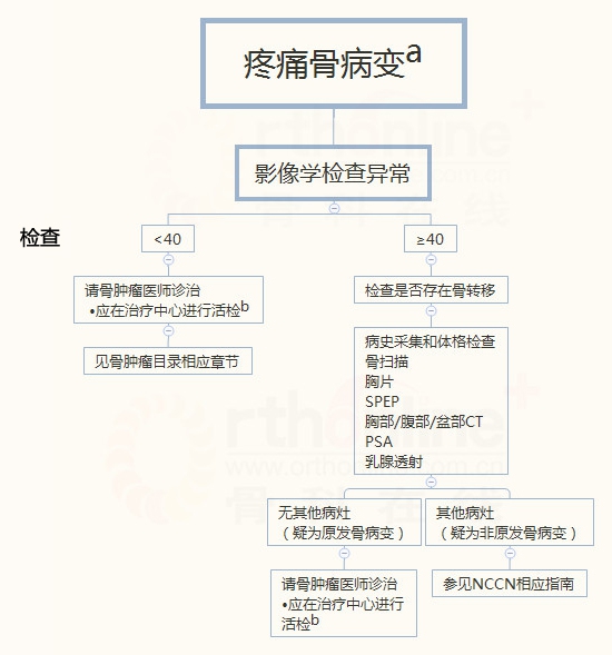 a 无痛骨病变需要肌肉骨骼影像学专家进行评估,并转由多学科小组诊治。见多学科小组(BONE-A)。
