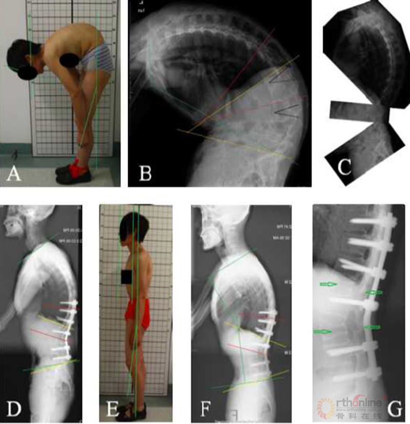 文献报道中一期双节段跳跃性截骨的临床疗效满意,且2年后临床随访矫形效果维持不变,并发症方面多大多数为良性并发症,包括腹部紧张性水肿、硬膜破裂、下肢一过性无力、肠梗阻等。