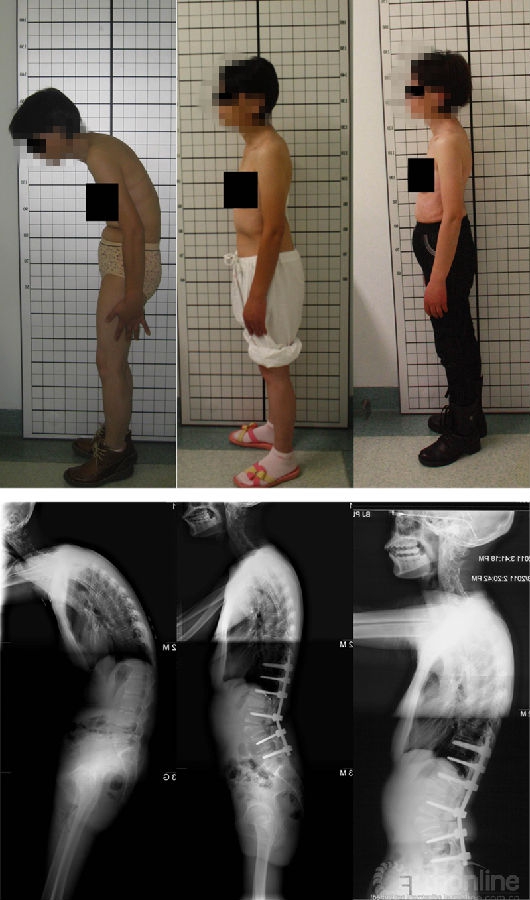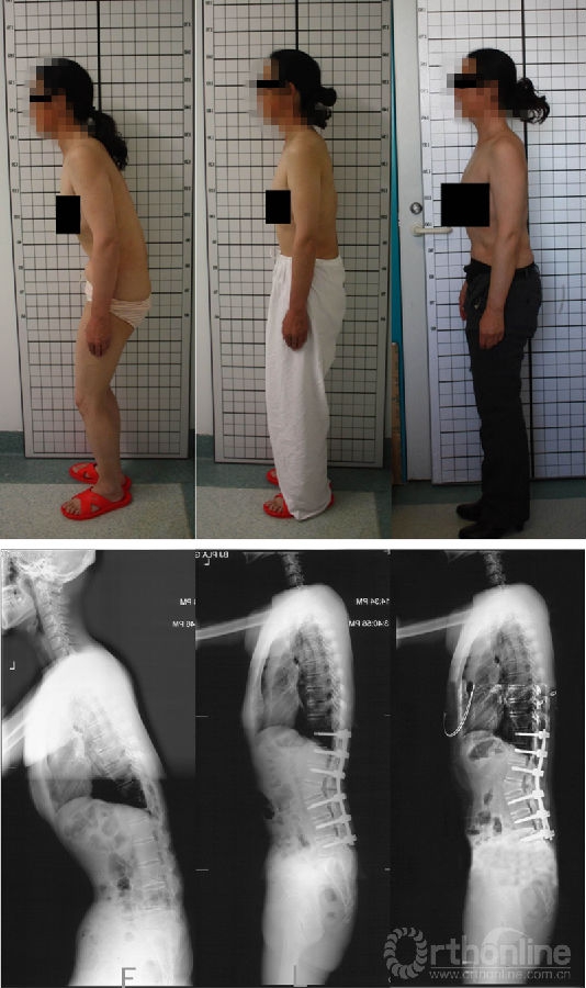 (图片资料摘自Kim等Results of Corrective Osteotomy and Treatment Strategy for Ankylosing Spondylitis with Kyphotic Deformity, Clin Orthop Surg, 2015, 7(3):330-6.)