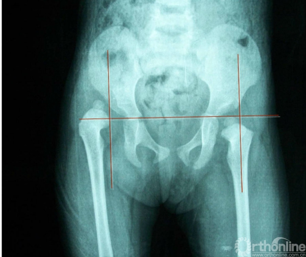 型软骨的水平线(称Y线或Hilgenreiner线),自髋缘外侧骨化边缘的垂线(称Perkin线或Ombredarne线),两线相交将髋臼划分为四区,正常股骨头骨化中心应在其内下区,若位于其他地区,则为脱位,脱位侧骨化中心常较小。来自广东省江门市五邑中医院刘彦教授介绍了,先天性髋关节脱位的典型病例应用X线该如何诊断,详情请阅读下方内容。