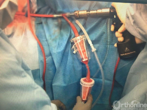 首先要介绍一种国外的器具,叫RIA Reamer/Irrigator/Aspirator 扩髓,冲洗灌注,抽吸装置 。结合和髓内钉扩髓,然后冲洗,抽吸将髓腔的骨质变成植骨的骨屑。在美国学习时也使用了这项技术。
