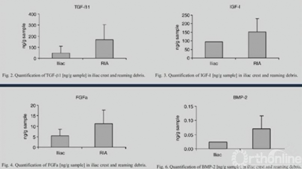 这篇2012年的JBJS告诉了我们答案,分别比较了常见的一些因子TGF,IGF,GFG,BMP。发现RIA的含量比自体髂骨取骨更高。