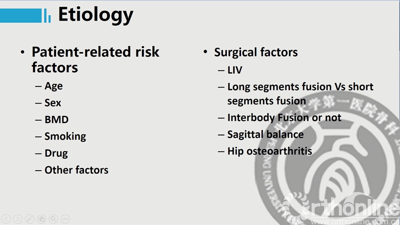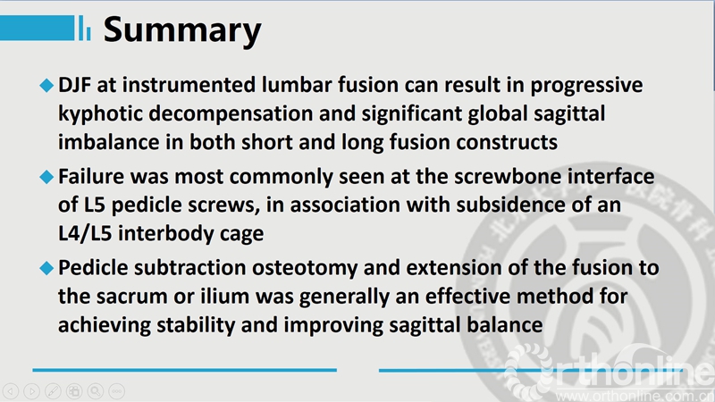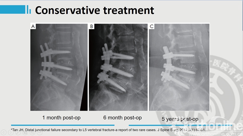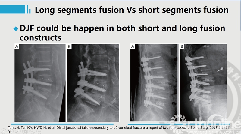 腰椎融合术后的DJF相比PJF发病率低,但往往伴有严重的临床症状,翻修手术的比例也比较高,是临床需要重视的问题。对于伴有骨质疏松症的老年退变性腰椎疾病,要在术前充分认识腰椎DJF可能发生的风险因素以及好发节段,并积极加以预防;对于术后出现DJF的病例要根据不同类型,不同的临床症状以及患者的身体条件进行相应的处理,掌握各种翻修手术的方法以及相应的治疗策略。