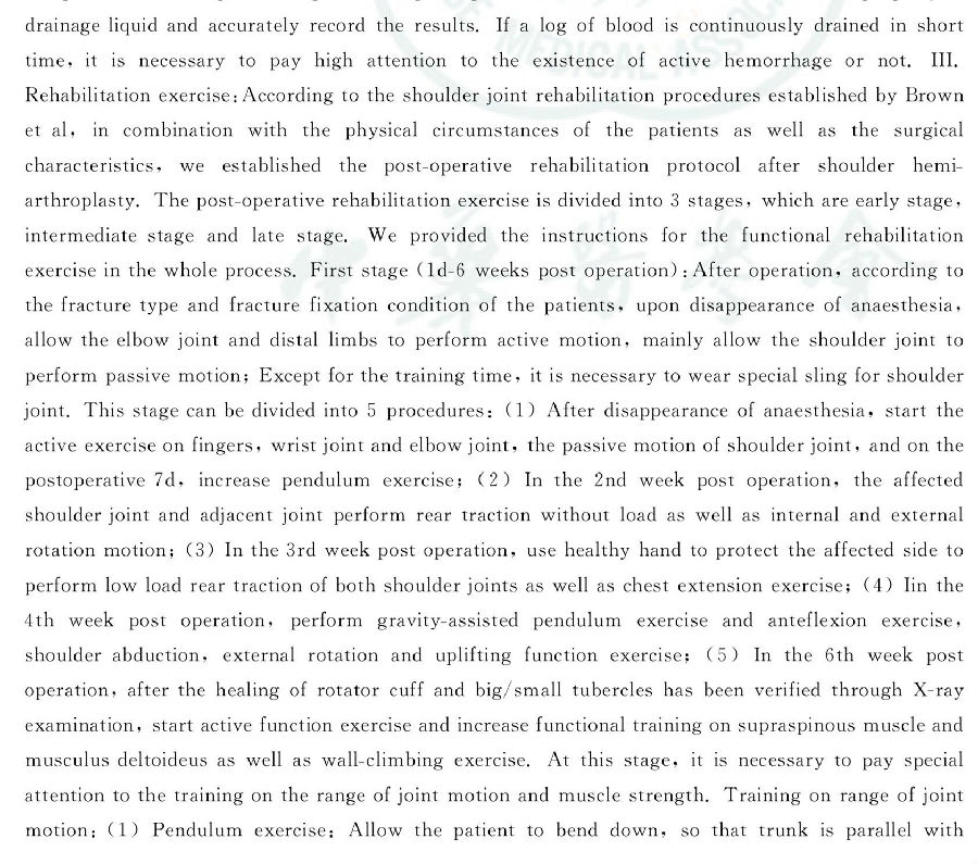 [14] 刘晓华,陶莉,彭瑛,等.人工肱骨头置换术后的肩关节康复治疗[J].中华物理医学与康复杂志,2004,26(10):607-609.