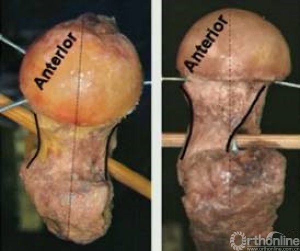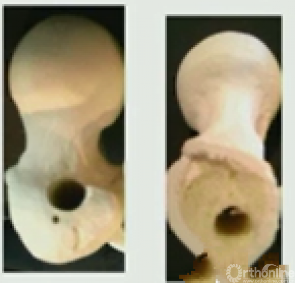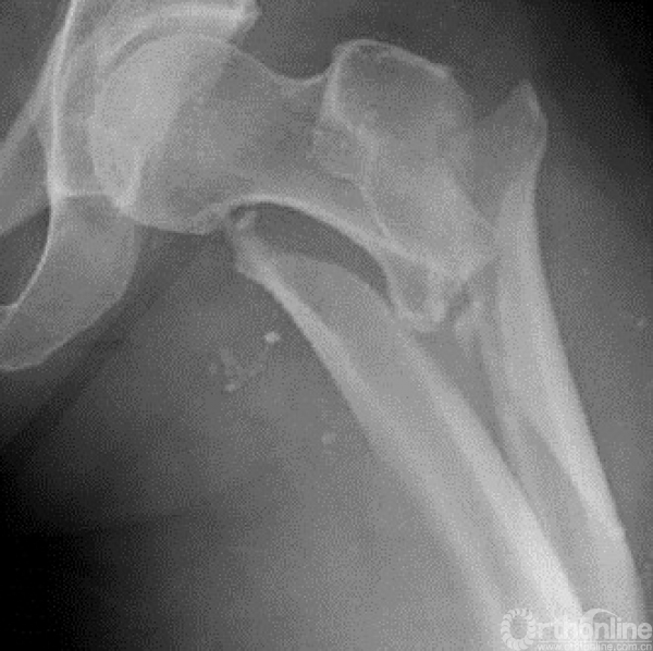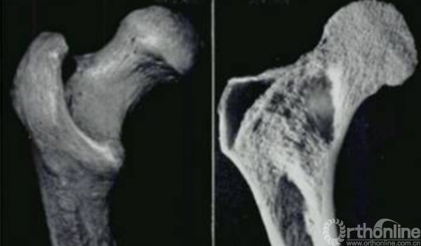 随着年龄的增加,股骨出现骨质疏松,前后的皮质开始变薄。此时出现骨折的风险逐渐增加。