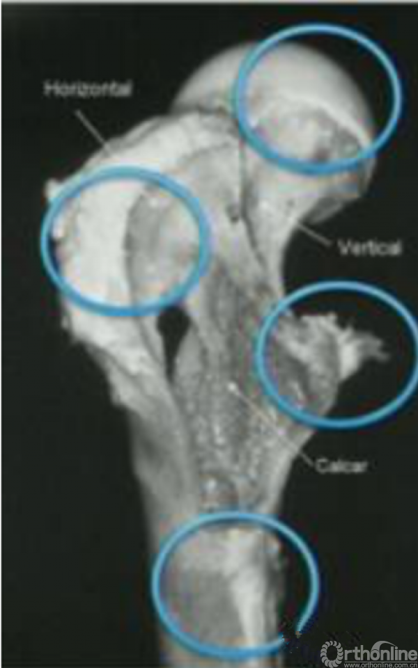 股骨近端生物力学坚强吗?一点也不...我们先来看一下股骨近端的解剖学研究,股骨近端承受身体巨大的重量,但股骨近端中却有三个骨量缺失的地方。