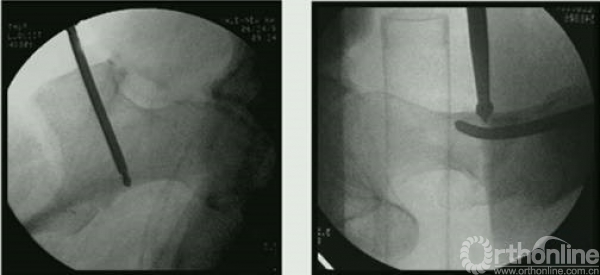 但进钉点不太适合选用梨庄窝进针,同时透视角度也需要进行微调。
