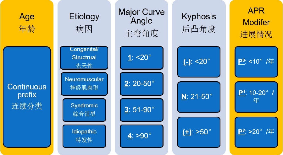 (摘自 Williams B A, Matsumoto H, et al. Development and initial validation of the Classification of Early-Onset Scoliosis (C-EOS).[J]. Journal of Bone & Joint Surgery American Volume, 2014, 96(16):1359-67.)