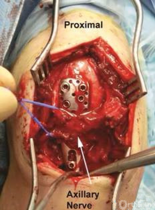 3.需要注意腋神经!该腋神经横跨肱骨干,需要小心分离保护,不能过度牵拉。