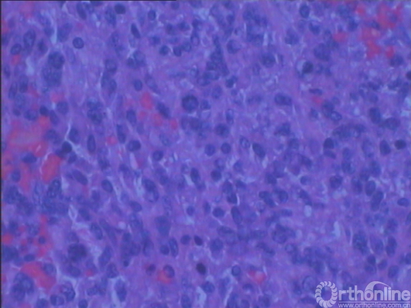 结节性筋膜炎常常由于其快速生长、细胞丰富、有有丝分裂相等特征而被误诊为软组织肉瘤,包括纤维肉瘤、恶性外周神经鞘瘤、恶性纤维组织细胞瘤等。临床上鉴别主要靠肿瘤的大小和部位,一般来说,直径超过5cm、位于深筋膜深层,肉瘤的诊断可能性较大。病理上主要取决于细胞的形态和细胞核的染色程度和异型性,一般说来肉瘤的细胞形态大小不一,细胞核大、深染、有丝分裂相常见、多见非典型性或病理性有丝分裂相。