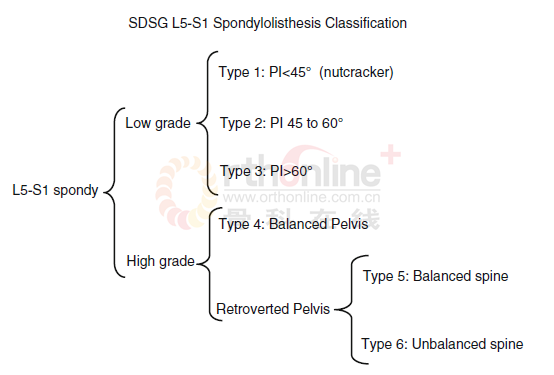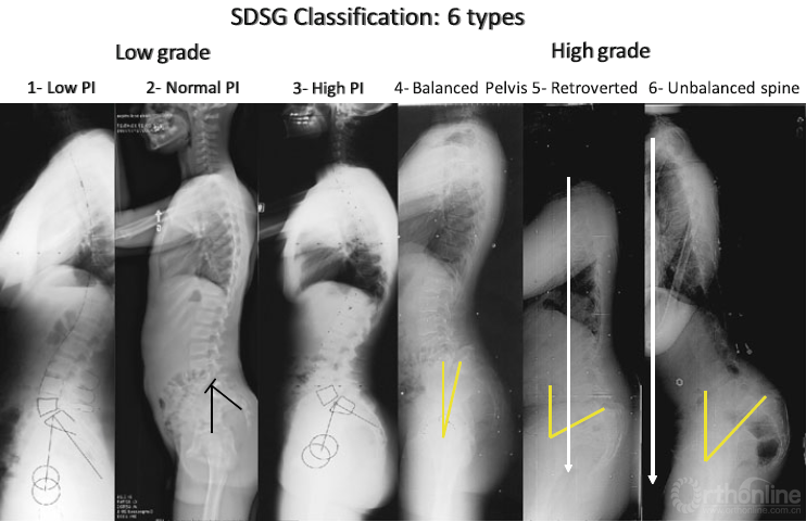 对于滑脱伴有脊柱侧凸的病例并不少见(15-40%),对于这类情况主要有三种类型:
