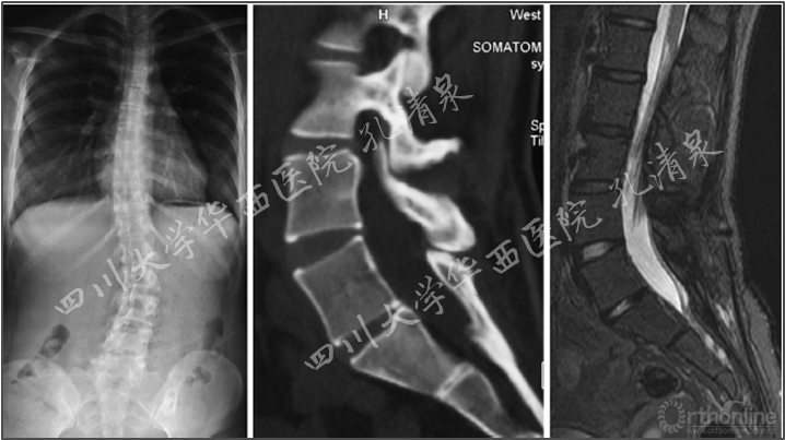 病情介绍:患者,女,12岁,因“腰痛3年,加重伴左下肢放射性疼痛半年并发现脊柱侧凸2年”入院。患者2年前在当地医院诊断为脊柱侧凸,给予支具治疗无改善。