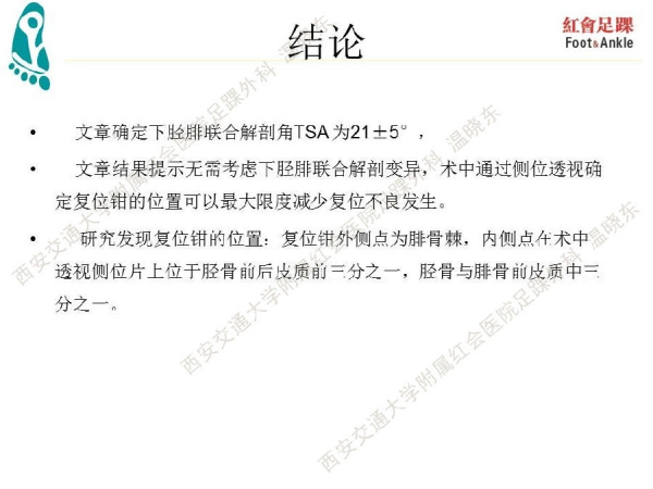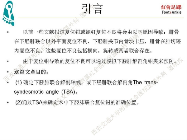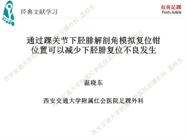 通过踝关节下胫腓解剖角模拟复位钳位置可以减少下胫腓复位不良发生