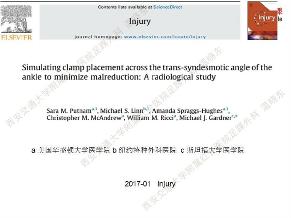 下胫腓联合复位不良会影响踝关节功能,发生率据文献报道约12%—52%,如何提高复位准确率仍然无定论,目前提高复位准确率的方法有:术中CT和直视下复位,术中CT设备要求高,众多医院无法实现;直视下复位需再取切口,并且对术者经验要求高。本文介绍的方法可以在术中侧位透视下实现下胫腓联合准确复位,操作简单易行,值得临床推广应用。