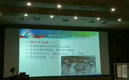 原来这张ppt来自西安交通大学第一附属医院的一次培训课件,是在给新员工讲述该院院史,标题“抗战迁陕跨世纪 仁术丰碑满甲子”也是建院60周年提出的口号。而这“四个不允许”也正是反映了老一辈医务工作者的献身医学的精神。这也是给新员工灌输的“心灵鸡汤”。