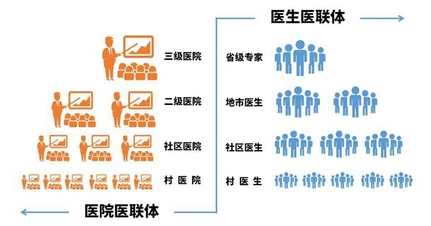 我们将医联体的概念主体从“医院”更换为“医生”,就可以给中国的医生集团一个新的定义:医生集团是指区域医疗联合组织,是将同一个区域内的医疗资源整合在一起,通常由一个区域内的三级医院的医生与二级医院医生、社区医生、村医生组成的一个医疗联合组织。