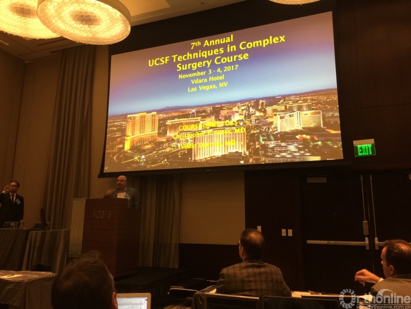 第7届UCSF脊柱外科手术与技术高级学习班于2017年11月在魅力四射的赌城拉斯维加斯的Vdara酒店隆重开班。大会主持人Dr. Dervien致大会开幕词,介绍UCSF Medical Center脊柱外科中心情况后开始了一天的学术报告。