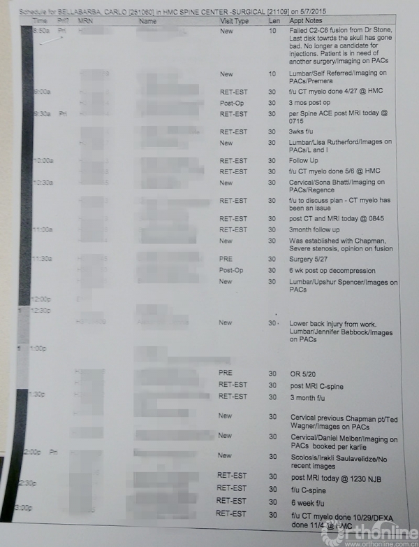 由于美国分级诊疗工作做的非常完善,能来HMC脊柱外科门诊看病的患者基本上各项检查结果都是完备的,有些还已经接受了一段时间的保守治疗,因此门诊病人的质量都非常高。