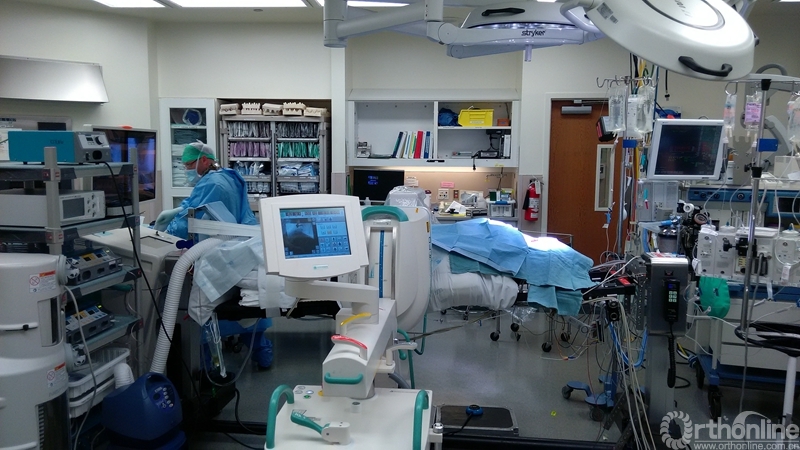 手术床既有先进的可自动翻身的Stryker翻身床,也有普通的Jakcon手术床,具体使用哪种手术床要看当天手术医生的习惯。和国内的习惯基本一致,手术床摆在手术室正中,患者头端摆放麻醉机、各种监护仪器、静脉通路以及脊髓监护仪器;C臂垂直手术床摆放;患者远端摆放一个简易的手术台,上面一般只摆放几件需要的手术器械;手术床的远端依次摆放着C臂显示器、装有电刀磨钻等系统的手术车(Cart)、Stryker吸引系统以及术中为患者加热的装置。多数手术室的照明系统上都安装有摄像装置,图像可以实时传输到墙壁显示器上,便于参观人员学习和交流。