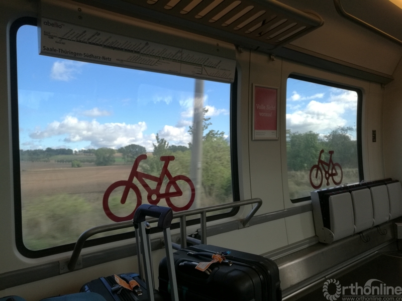拜别老师,乐呵呵坐上小火车去转车的地方,东西挺多,两个大箱子,一个背包。一上车背包拿着,大箱子放在过道,开始打量,小火车也很好,可以带着自行车,挺敞亮。一边看旁边几个德国小朋友玩耍,心想国外家长素质就是高,不像国内高铁孩子胡打乱闹,家长扯着嗓子吹牛八卦,家长里短。