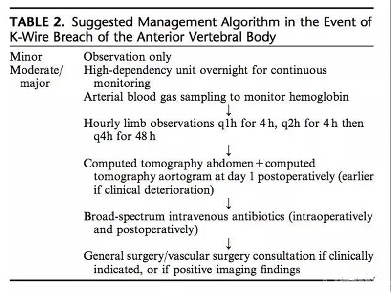 对于穿刺时误穿出椎体前缘造成血管损伤的处理:
