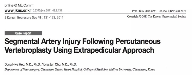 现在伤椎和上下邻椎均做骨水泥通道,邻椎注入骨水泥。并插入内芯超出套杆尖端5mm,使骨水泥充分挤出(原文用骨穿刺活检通道套杆,和椎体成形通道应该差不多粗细)。
