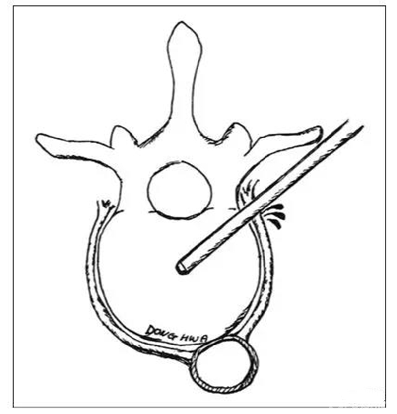 4.上述正侧位透视若不一致,意味着穿刺角度不对,需及时调整,以防进入椎管。