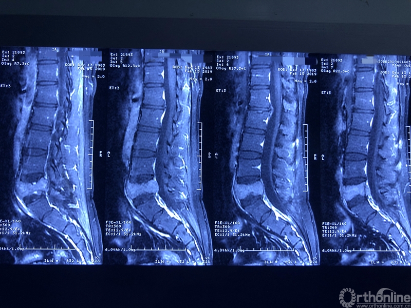 据介绍,患者为39岁男性,在一年前开始出现腰部反复疼痛的症状,休息下后疼痛还可以缓解,当时并未引起患者重视。过年后感觉疼痛加重,赴当地医院检查。核磁共振显示腰椎上长了一个鹅蛋大小的肿瘤,不偏不倚地侵蚀在第五节腰椎上,正是腰椎和骨盆连接部位附近。于是患者来同济医院骨科就诊。