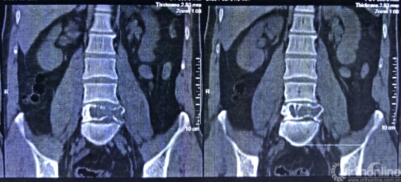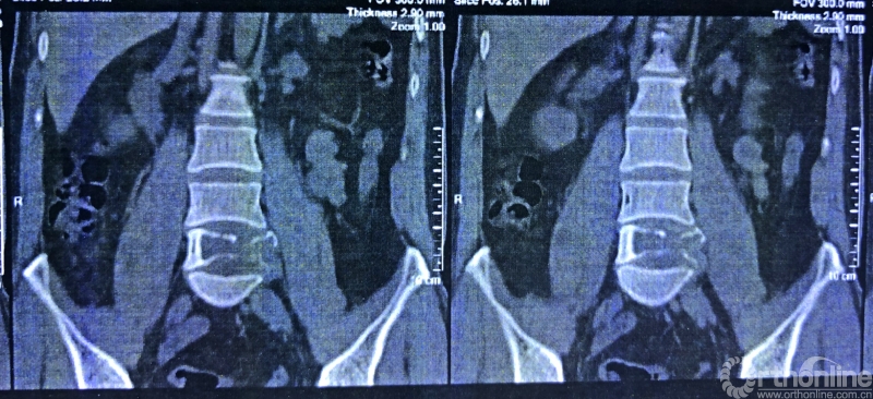 通过对患者详细的身体检查、穿刺活检和综合评估后,确诊患者是腰椎骨巨细胞瘤,第五腰椎破坏70%以上,邻近软组织也有破坏。这种肿瘤属于交界性的有恶性倾向的良性肿瘤,若不彻底切除,患者疼痛会逐渐加剧,甚至因骨质坍塌而瘫痪,若肿瘤细胞转移更会危及生命。若是能在早期尽快彻底、完全地切除肿瘤及被侵蚀椎体,病人才很可能完全战胜肿瘤。
