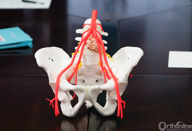 术前2天,李锋教授通过3D技术为患者定制了个性化人工椎体,这个椎体将在肿瘤切除后,植入到患者的腰椎上,代替被肿瘤侵蚀的椎体。
