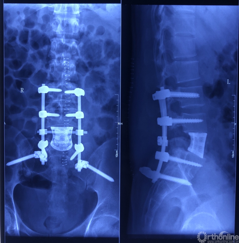 在三大技术的保驾护航以及李锋教授高超的手术技巧下,手术顺利结束。肿瘤和被侵蚀的椎体被切除,人工椎体被两根矫形棒和八颗螺钉稳稳固定在脊椎缺口处,脊柱结构重建。与传统手术方案相比,患者创伤减少,软组织及血管、神经等破坏更少,肿瘤清除更彻底,局部肿瘤复发率更低。术后患者生命体征平稳,安返病房。病灶已送检,将根据病检结果指导进一步的治疗。目前,病人神志清醒、腰痛缓解、恢复良好。