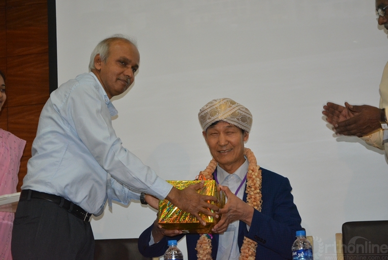 临行前,哈沙教授特意安排家宴欢迎秦泗河教授访问印度,并赠送印度ASAMI学会标志性礼品。