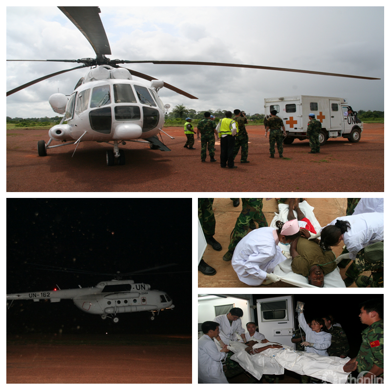 申请转运病人,联合国有两个途径。一是平转,由二级医院的院长写转诊单提交给联合国航管部门,航管部门将其列入飞行计划,再派直升飞机将病人转运至首都蒙罗维亚。