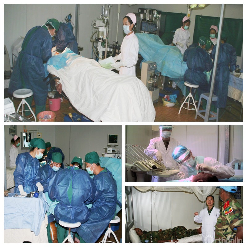 孙天胜大校率领的中国医疗队由医生、护士、药师、医技人员、司机、厨师和警卫等成员组成。其中,医生有9名,护士8名,医生分为内科组和外科组,外科有普外科、骨科、烧伤整形科、胸外科等专业的医生,但是没有脑外科医生。医院配备有超声机、X线机和其它一些检验设备,也设有手术室和病房。