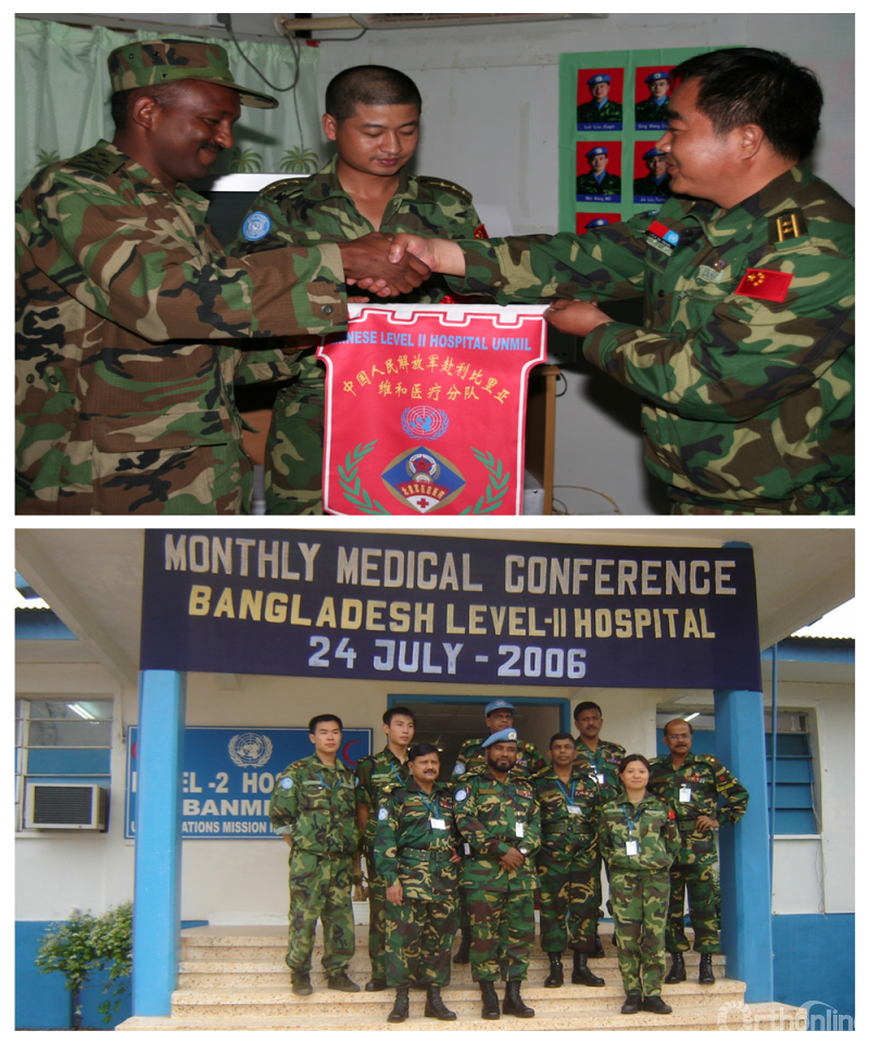 联合国为利比里亚维和部队提供医疗保障的体系主要有四级。一级是设在营连级的卫生所;二级以上是医院,其中二级医院分布在利比里亚的四大战区;三级医院是联合国维和部队设在利比里亚任务区的总医院,位于首都蒙罗维亚;四级医院设在加纳。除此之外,原则上还有一个设在德国的五级医院,但是几乎涉及不到。