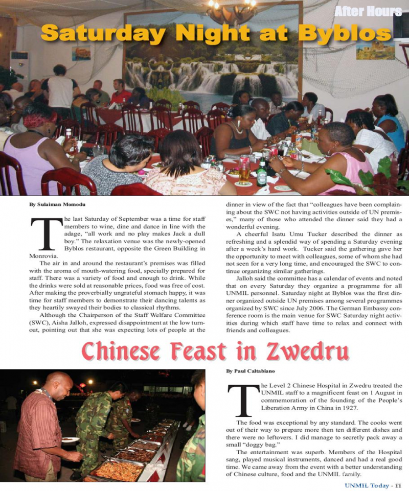 在中国建军节、国庆节和中秋节时,医疗队也会邀请联合国官员一同庆祝。双方彼此信任和理解的增加,为战区医疗保障工作的顺利开展营造了良好的氛围,也提供了很多便利。